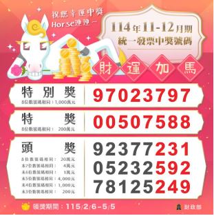 114年11-12月統一發票中獎號碼開獎