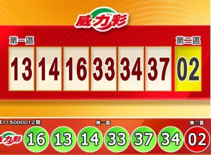 威力彩第115000012期9日開獎,第一區中獎號碼由小至大依序為13、14、16、33、34、37,第二區中獎號碼為02號,已經連續30期槓龜,下期12日開出的威力彩,台中太平工作借款預估銷售6.0~6.5億元,頭獎累積估計上看13.5億元。